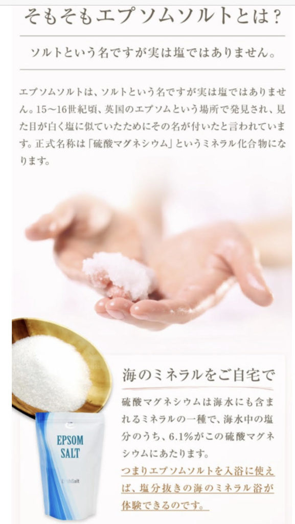 そこで、健康オタクの斉藤が「健康豆知識」としてお勧めしたいのが「エプソムソルト(マグネシウム入浴剤)」です。